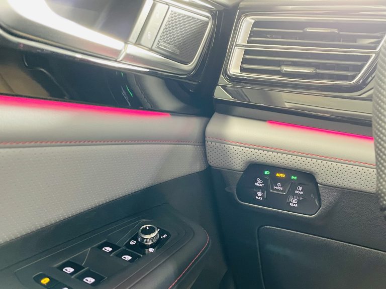 Khoang lái Teramont X được thiết kế sang trọng hiện đại với táp-lô thiết kế kiểu laser đi cùng với đèn nội thất 30 màu mang đến phong cách lịch lãm, sang trọng.