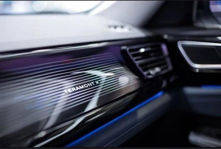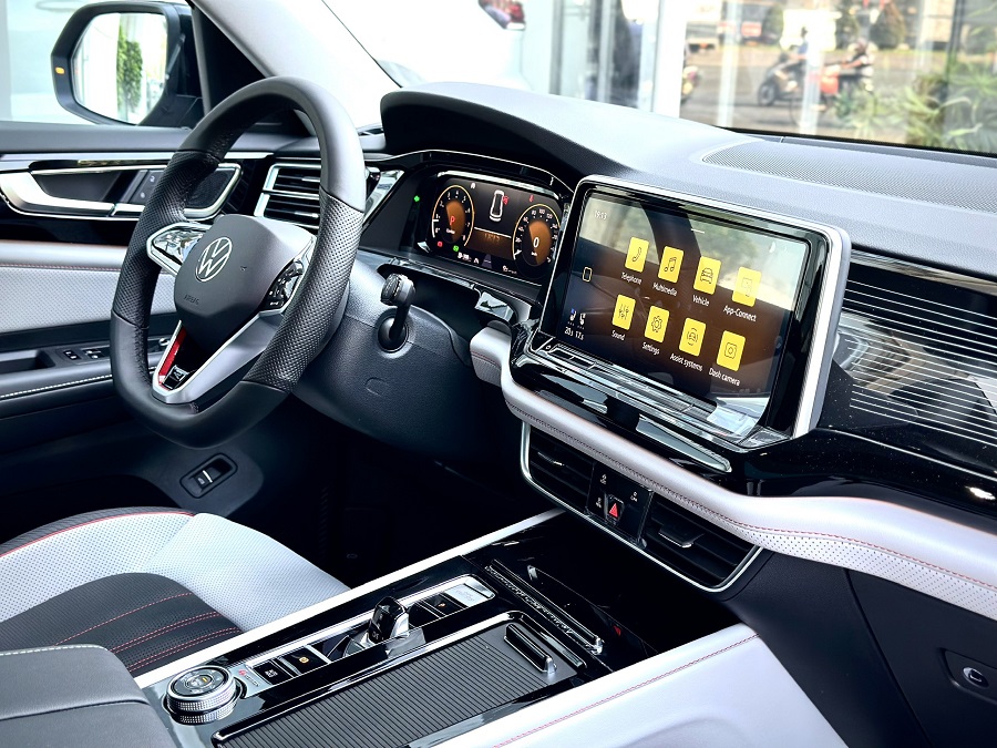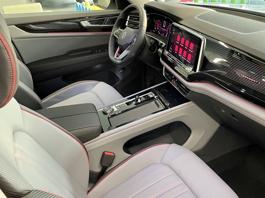 Thiết kế của Teramont X nổi trội nhất ở nội thất. Đồng hồ trung tâm Digital Cockpit Pro hiển thị đa dạng thông tin cho người lái và có thể tùy chọn 10 màu sắc. Màn hình cảm ứng Discover Media 12,3 inch được điều khiển bằng cử chỉ Gesture control. Thiết kế màn hình nổi cùng bảng táp-lô tạo hơi nghiên về người lái. Vì vậy, không gian khoang lái của xe thiết kế khoa học hiện đại và không có chi tiết thừa.