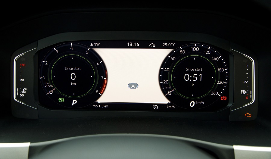 Thiết kế của Teramont nổi trội nhất ở nội thất. Đồng hồ trung tâm Digital Cockpit Pro hiển thị đa dạng thông tin cho người lái và có thể tùy chọn 10 màu sắc. Màn hình cảm ứng Discover Media 8 inch được điều khiển bằng cử chỉ Gesture control. Thiết kế màn hình cùng bảng táp-lô tạo thành mặt phẳng liền từ trái sang phải. Vì vậy, không gian khoang lái của xe rộng và không có chi tiết thừa.