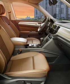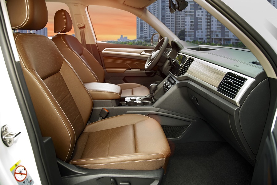 Nhờ chiều dài cơ sở 2.980 mm, mẫu SUV 7 chỗ của Volkswagen có được không gian nội thất rộng rãi cho 7 người. Cả 3 hàng ghế đều được bọc da, trong đó có 2 ghế trước tích hợp chỉnh điện, sưởi và nhớ vị trí.